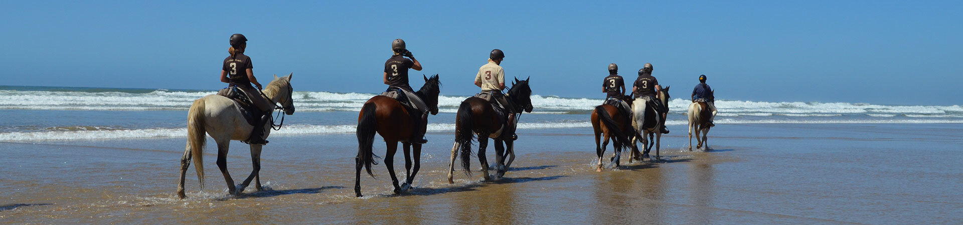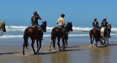 Endlose Galoppaden auf sandigen Wegen, Lehmhüttendörfer im Kakteenlabyrinth, Gemüsepflanzungen unter Plastik, grüne Flusstäler, Berberfrauen in blumigen Gewändern und schließlich nähern Sie sich dem Antiatlas, im steinigen Gelände wachsen Argan und Mandelbäume... Endlich kommt das Meer in Sicht am Strand galoppieren Sie nach Herzenslust, beschwingt durch den Meerestau und die Geschwindigkeit der Pferde.