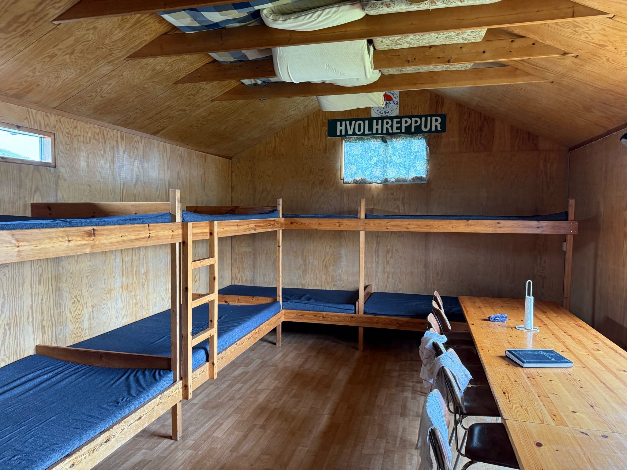 Gemeinschaftsunterkunft im Schlafsaal des Skálakot Manor Hotels sowie in einfachen Berghütten