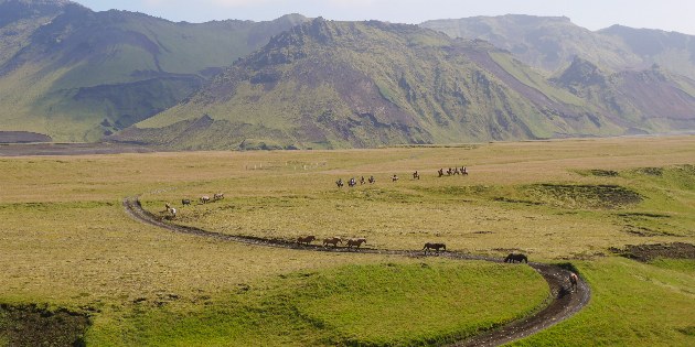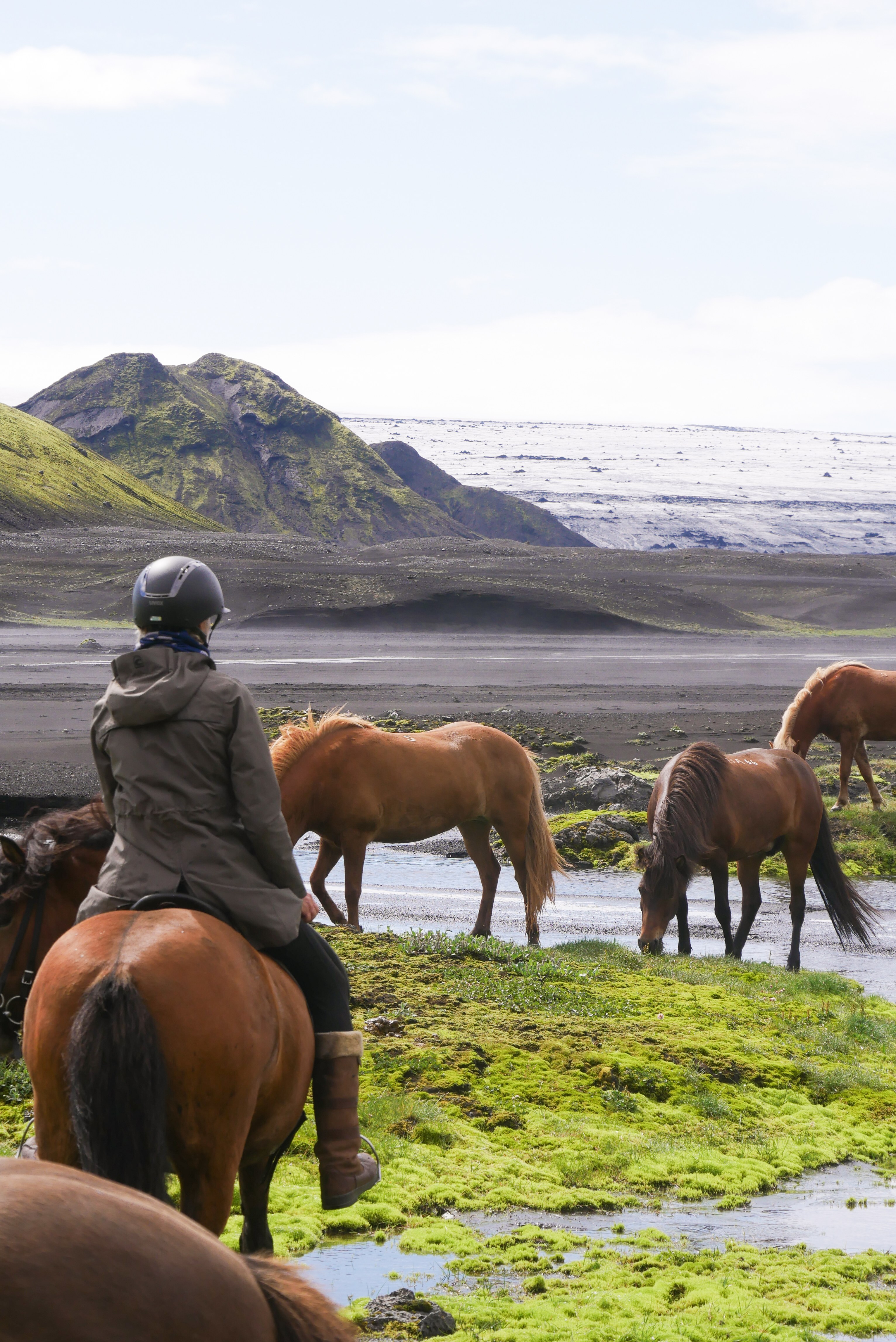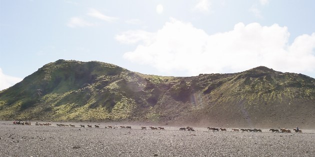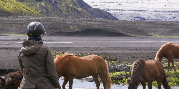 Sie reiten mit einer Herde freilaufender Pferde rund um den Gletscher Tindfjallajökull und erleben alle Facetten der Isländischen Highlands von grünen Feldern und Hängen bis zu Lavafeldern und rauen Bergen.