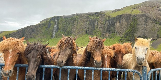 Wir stärken uns mit einem herzhaften Frühstück und dann fahren wir nach Skalakot, wo die Pferde bereits auf uns warten. Sie bekommen eine Einführung in den Ritt und das Reiten mit freilaufender Herde. Los geht es entlang der Berge Eyjafjöll und vorbei am Seljalandsfoss. An einer alten Brücke machen wir Pause und Pferdewechsel. Wir überqueren den Fluss und reiten durch die Lupinenfelder bis nach Fljótshlíð, wo wir Mittagspause machen. Nach einer kurzen Rast geht es weiter in das Fell.