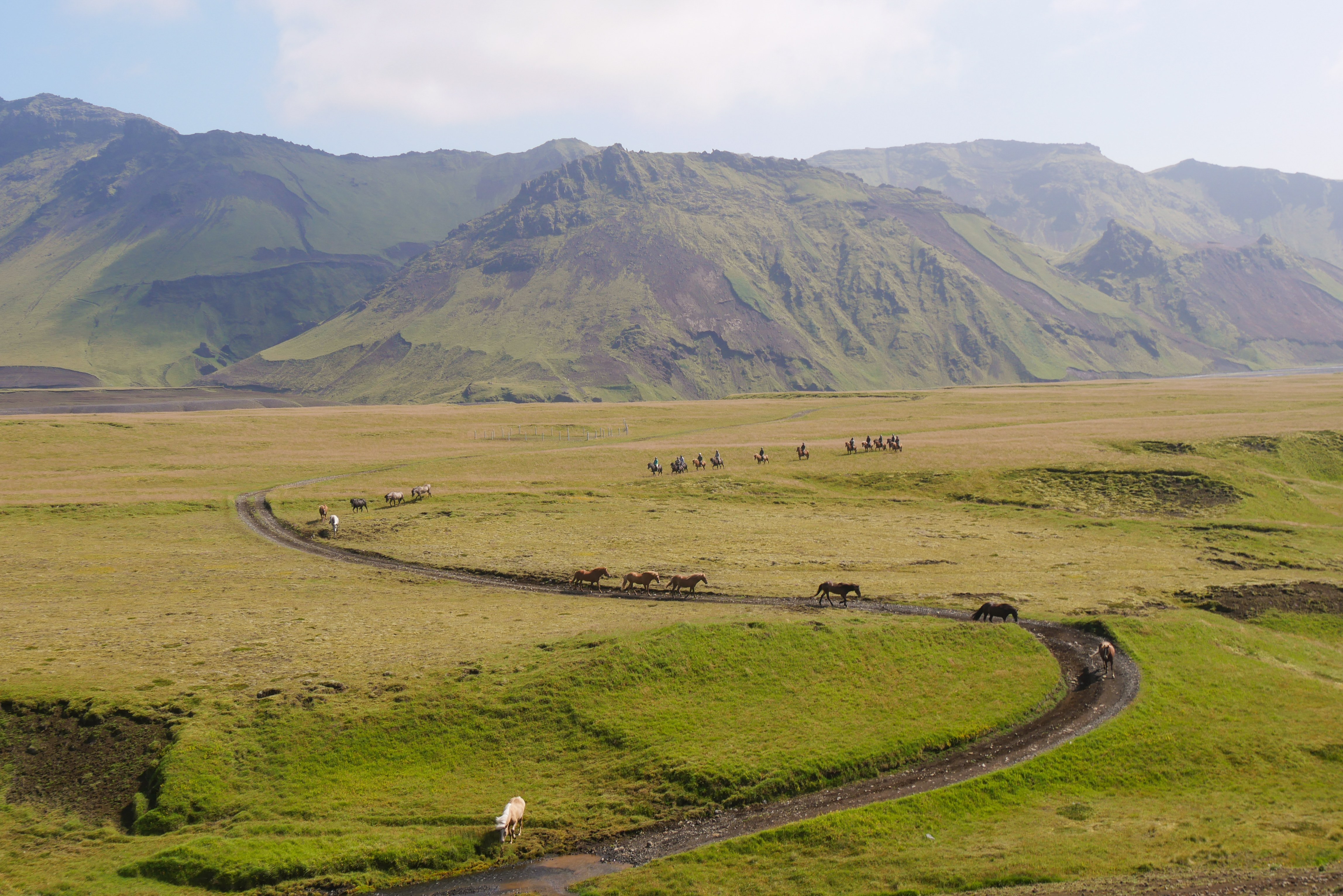 Im Sommer bietet Skálakot lange Reittouren durch die Highlands im Süden Islands an. Es ist etwas, das erfahrene Reiter erleben sollten, die die Islandpferde richtig kennen lernen wollen. Die Touren nehmen Sie mit durch die schönsten Teile der Highlands mit einer vielfältigen Landschaft in der man Vulkane, schwarze Strände, Gletscher, Flüsse, grüne Hügel, heiße Quellen und Lavafelder erleben kann. Durch diese Landschaft zu gehen, ist eine einmalige Erfahrung - sie vom Pferderücken aus zu erleben macht die Sache zu etwas ganz Besonderem. Draußen zu sein und die wilde und friedliche Natur zu erleben ist etwas, an was sich unsere Gäste bis zum Lebensende erinnern werden!