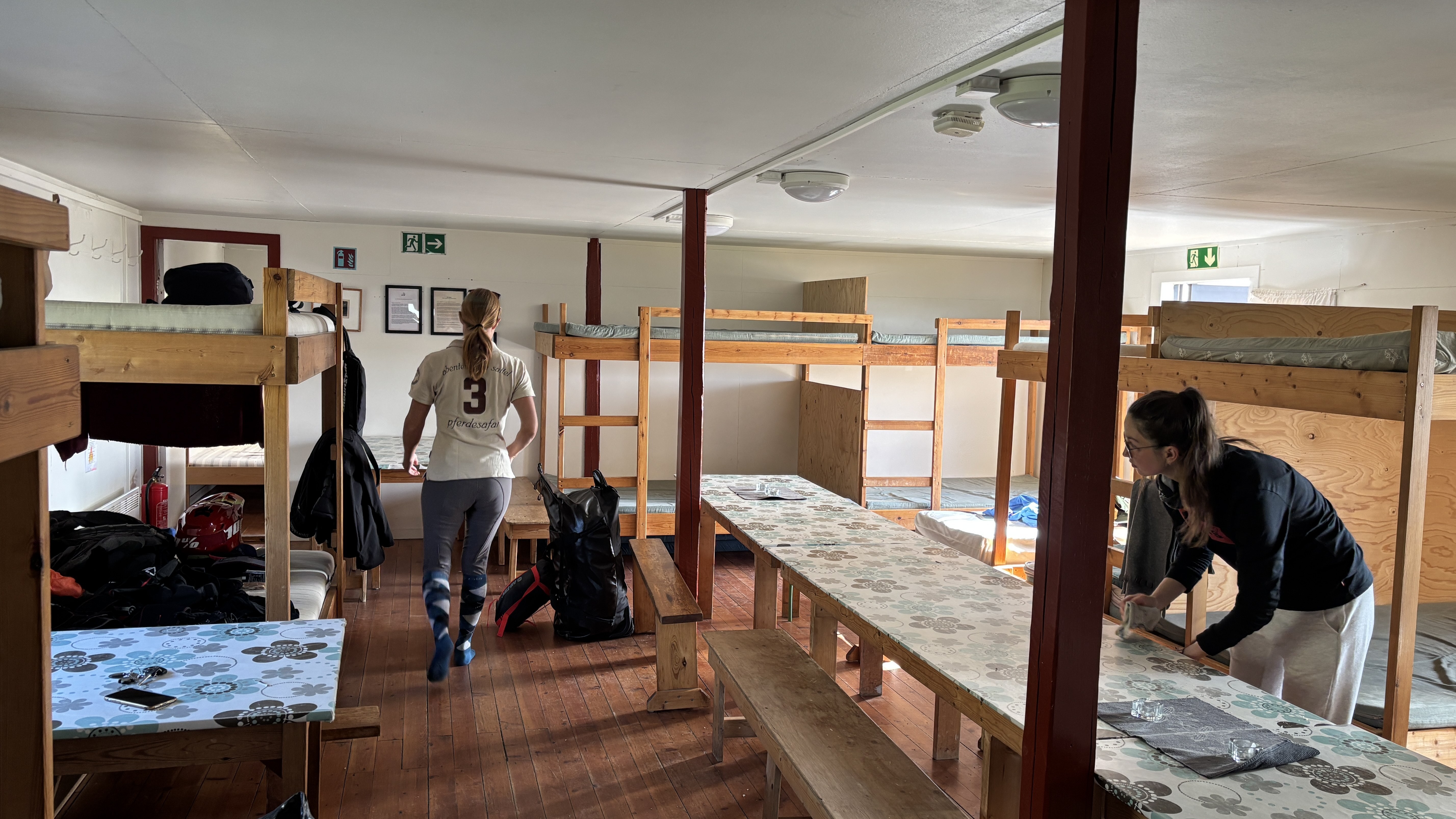 Unterkunft im Schlafsaal (Schlafsack) mit gemeinsamen Waschräumen.