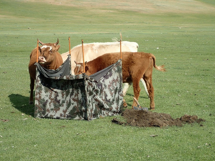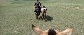 Aber umgekehrt werden Sie entdecken, dass einige Dinge, die unsere westlichen Pferde erschrecken, von den mongolischen Pferden anstandslos geduldet werden, insbesondere die Tatsache, dass sie in Reitpausen mit dem Führstrick des Zaumzeugs an ihrem eigenen Vorderbein festgebunden werden!