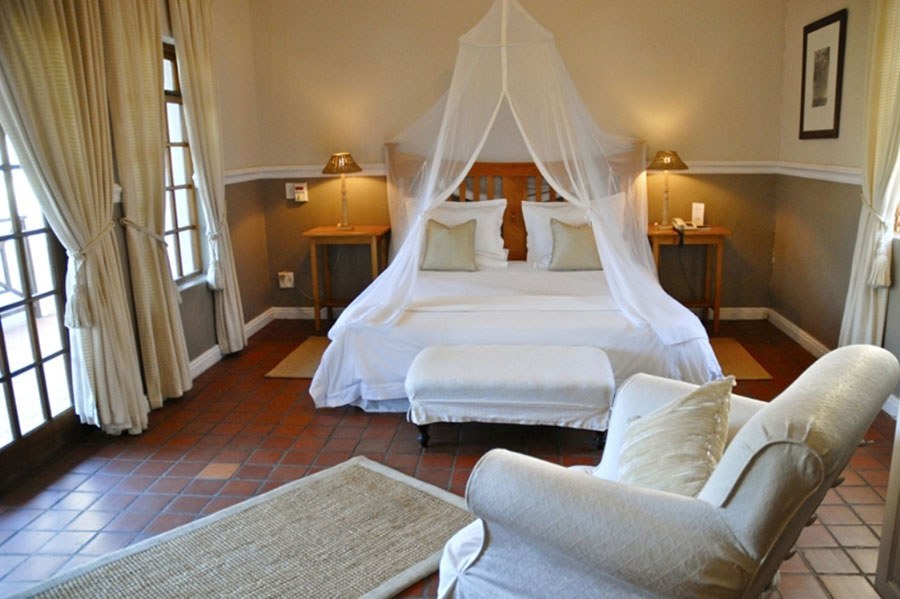 Im Angala Gästehaus (5 Sterne) trifft schlichter, aber gemütlicher Luxus auf die unberührte Schönheit der Natur. Im Herzen der Weinregion zwischen herrlichen Bergen gelegen, ist dieses Gästehaus ein Zufluchtsort sowohl für den Körper als auch für die Seele. Von hoch über den Hängen des Simonsberges mit spektakulärer Aussicht über die Weingärten zu den Boland Mountains können Sie großartige Sonnenuntergänge und das Leuchten der Berge in der späten Nachmittagssonne genießen. Alle Suites und Cottages sind geräumig, komplett ausgestattet und ungestört. Besondere Aufmerksamkeit gilt der Dekoration und feinen Details – klare Linien und natürliche Farben gepaart mit authentischem Flair. Morgens wird Ihnen ein herzhaftes Frühstück mit selbst zubereiteten Speisen und frisch aufgebrühtem Kaffee serviert. Nach einem Tagesritt können Sie sich zwischen einer Vielfalt professioneller Spa- und Massage-Behandlungen in Ihrem eigenen Zimmer entscheiden. Oder Sie wecken Ihre Sinne im Angalas umweltfreundlichen Pool. Diese einzigartige Ausrüstung stellt den natürlichen Filterungsprozess wieder her, wie er in Bergbächen, Flüssen oder Teichen zu finden ist. Da Angala so ein exklusives Gästehaus ist, wird eine Reservierung ein paar Monate im Voraus dringend empfohlen. Die Fahrtzeit zu den Ställen beträgt rund 10 Minuten. Klein Waterval Guest House Klein Waterval liegt am Rande von Franschoek, am Ufer des Bergflusses. Das gemütliche Gästehaus ist umgeben von Weinbergen und wunderschöner Berglandschaft. 10 Minuten von den Stallungen und auch von Franshoek entfernt, liegt es optimal, um hier einen entspannten Reiturlaub zu verbringen. Zu erwähnen ist außerdem die Nähe zu unzähligen preisgekrönten Weingütern. Die Gebäude sind im für die Region typischen Cape Dutch Stil erbaut, dieser Stil findet sich in der Einrichtung der Zimmer wieder. Alle 12 Gästesuiten haben ihren separaten Eingang und verfügen über eine Terrasse mit Blick auf die Gärten, Weinberge und/oder Berge. Es gibt einen Pool und in der kälteren Jahreszeit eine Lounge mit einem offenen Feuer. Es gibt ein kontinentales oder ein "Farmhouse" Frühstück. Freies WLAN und Satelliten-TV sind verfügbar. Farm-Unterkunft Für Gäste, die nahe bei den Pferden sein möchten, ist die Farmunterkunft genau das Richtige. Es gibt drei gemütliche Schlafzimmer (ein Zweibett- und zwei Doppelzimmer), die früher mal die alten Stallungen waren, beide mit Innenhof und Aussicht auf den atemberaubenden Simonsberg. Die Zimmer haben ein eigenes Badezimmer mit Dusche, einen Safe, Mini-Kühlschrank, sowie eine Möglichkeit, Tee und Kaffee zuzubereiten. Ein kontinentales Frühstück (inklusive Müsli, Joghurt, Zerealien, Zwieback und Tee oder Kaffee) wird bereit gestellt, um es in Ihrem Zimmer oder auf Ihrer Terrasse zu genießen – neue Energie für die Tagesausflüge! Nach einem aufregenden Ritt am Morgen können Sie einen faulen Nachmittag mit einem Buch in Ihrer Hängematte verbringen oder einfach die Umgebung genießen. Diese Unterkunft im entspannten Farmstil lässt Sie wahrhaftig in die Cape Winelands Riding Erfahrung eintauchen. Auf Nahrungsmittelallergien oder Diätwünsche kann nach vorheriger Information bei Buchung eingegangen werden.