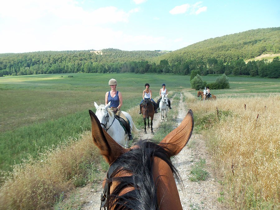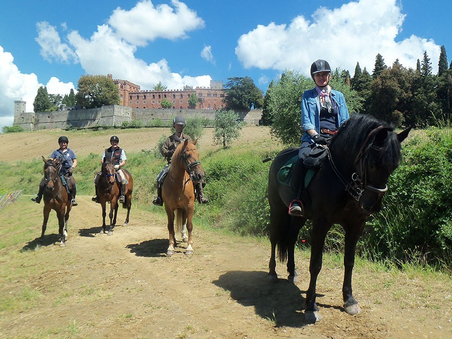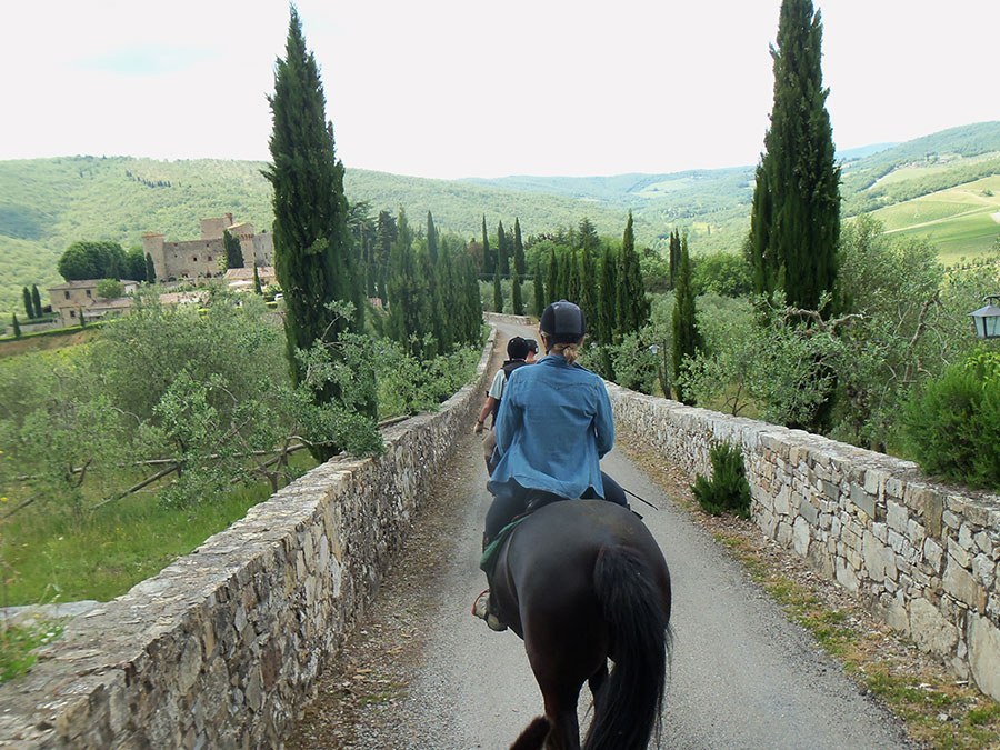 Von historischen Bauten über Weinstöcke, Olivenbäume und Wälder bis hin zu den Farmen und Villen. Genießen Sie dieses Stück Land außerhalb von Menschenmassen und Verkehr und entdecken Sie einige der besten Weinfarmen der Chianti Region, wo Sie fantastischen toskanischen Wein und regionales Essen genießen dürfen. Abgerundet wird das Ganze durch die ausgiebige Ritte auf gut trainierten Pferden, welche über das Jahr verteilt auch Vielseitigkeits- und Dressurprüfungen gehen und sich schon auf die entspannenden Reittouren mit Ihnen freuen.