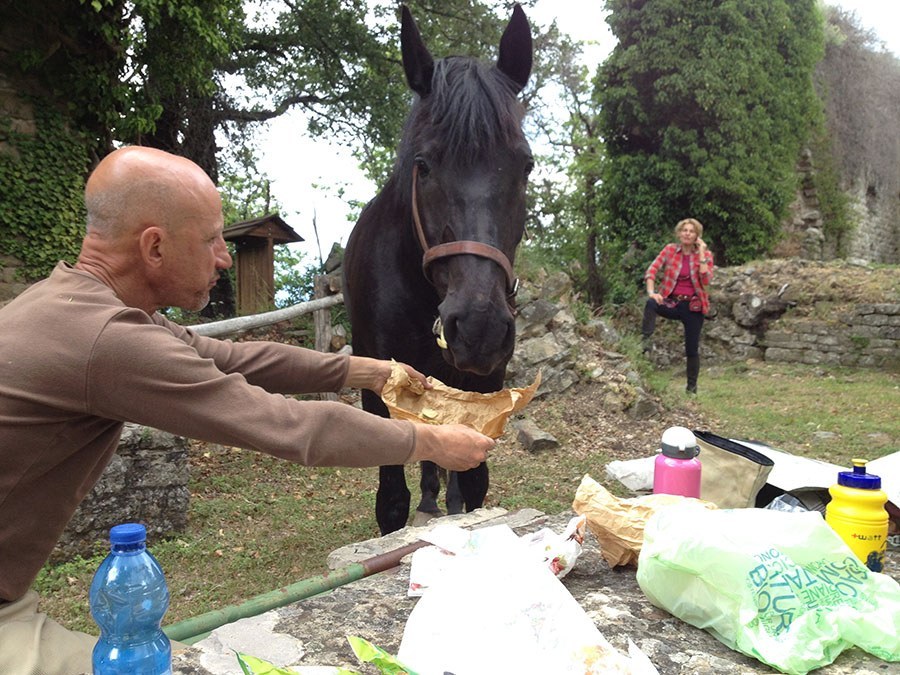 Sadio und Donatella haben hohe Ansprüche an ihre Pferde, die sie sorgfältig aufgrund ihres Charakters und ihrer Fähigkeit, auf dem Platz und im Gelände gute Leistungen zu erbringen, auswählen. Wenn ein Pferd aber einmal für das Zentrum ausgewählt wurde, wird es nie verkauft; Pferde, die für den Reitbetrieb zu alt sind, erhalten auf dem Hof ihr Gnadenbrot.
