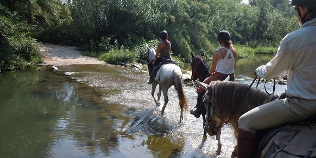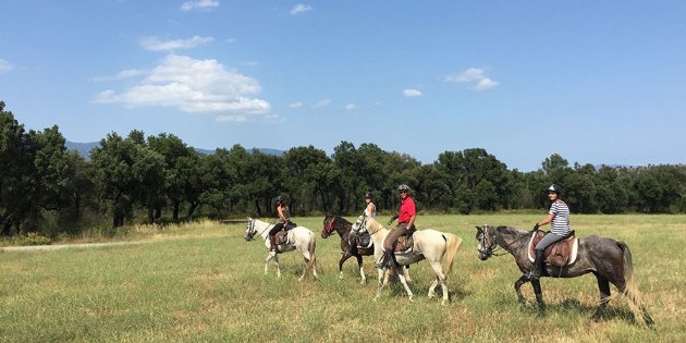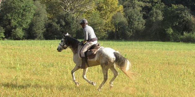 Nach dem Frühstück bereiten wir unsere Pferde vor und brechen auf den Wegen des dichten mediterranen Waldes auf, dem Bergrücken folgend, mit spektakulären Ausblicken auf die harmonische Kette von Feldern und Wiesen. Wir erreichen den Fluss Fluvià, neben der Stadt Báscara und ihrer berühmten Pferderennbahn. Dann geht es weiter zwischen Olivenhainen und Getreidefeldern, vorbei an Bauernhäusern und Kirchen, und schließlich galoppieren wir erneut auf breiten Wegen durch den Eichen- und Korkeichenwald, der uns nach Galliners bringt, wo wir unser Picknick machen werden. Durch die kleine Stadt Vilamarí erreichen wir schließlich Can Grau. Sobald unsere Pferde geduscht haben und auf der Weide sind, werden wir einen wunderbaren Moment zusammen mit einem Glas Cava genießen, um unsere angenehmen Erfahrungen in dieser Gegend in Gesellschaft der Pferde zu feiern.