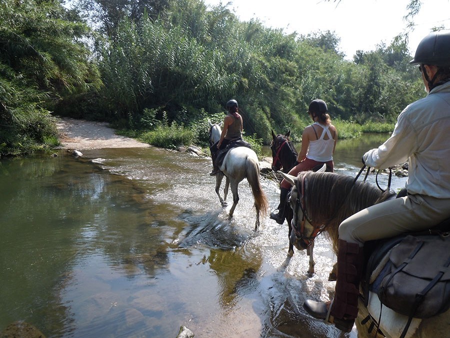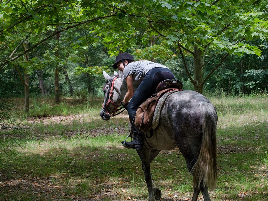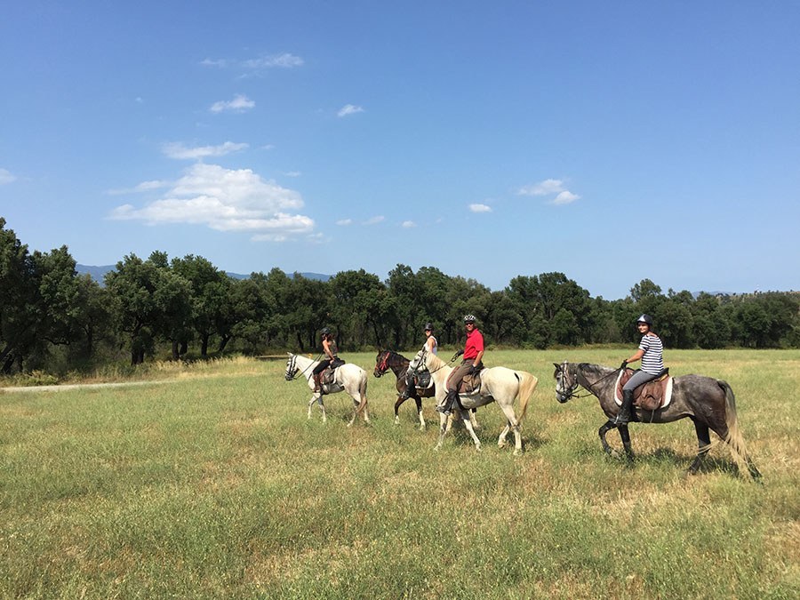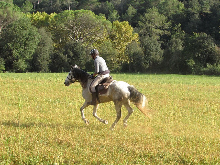Heute führt uns die Route zu einigen wunderschönen Pappel- und Buchenwäldern am Fluss Ter. Danach folgen Felder und Wälder, und wir durchqueren das Dorf Medinyà unterhalb seiner Burg und genießen Ausblicke auf die Gavarres-Berge. Nach einem köstlichen Picknick am Fluss kehren wir gemütlich nach Can Grau zurück und wechseln zwischen kleinen Wegen mit riesigen Wiesen und dichten und abwechslungsreichen Wäldern ab. Während des Rittes durchqueren wir das Dorf Cervià de Ter, wo wir die Burg umrunden können. Nach der Ankunft haben wir wieder die Möglichkeit, uns in den Gärten von Can Grau oder auf der Terrasse mit Blick auf die Pferde zu entspannen. Zum Abendessen hat Anne ein ausgezeichnetes hausgemachtes Essen im katalanischen und provenzalischen Stil zubereitet.