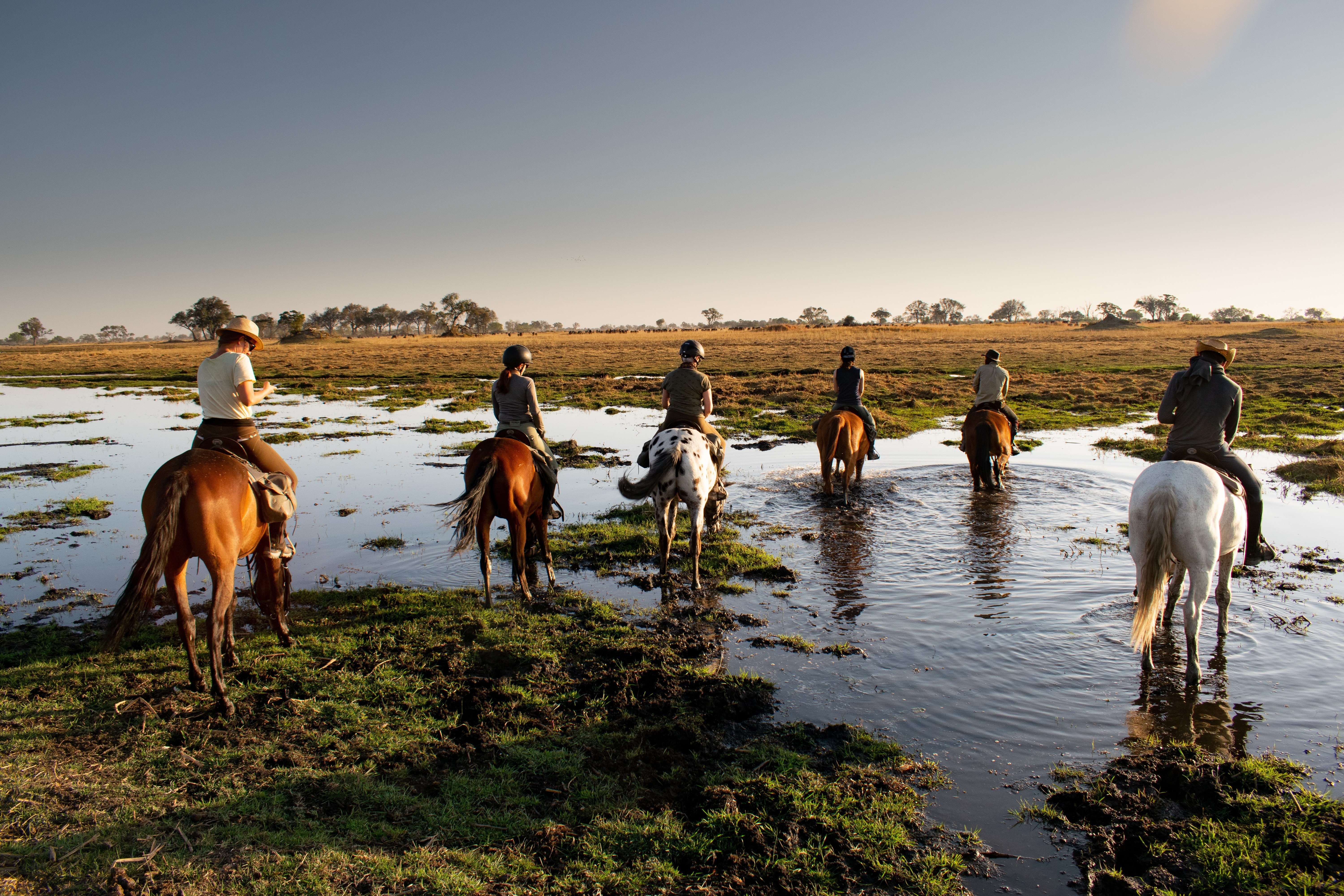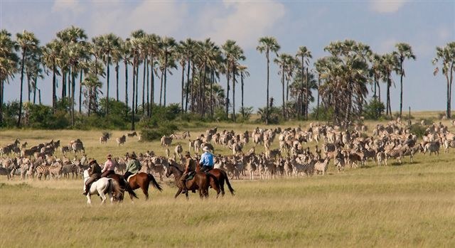 Das einzigartige Okavango-Delta wurde kürzlich zum 1000. Weltkulturerbe erklärt und ist ein Paradies für Reiter. Während sich die Fluten des Deltas nach Süden ausbreiten, folgt die Tier- und Vogelwelt und bietet die Möglichkeit, die legendären Wildherden Afrikas vom Pferd aus zu beobachten. Auf diesem Ritt entdecken Sie außerdem die außergewöhnliche Kalahari-Wüste mit ihren Salzpfannen und der unendlichen Weite. Sie unternehmen Sternritte von einem gemütlichen Camp aus.