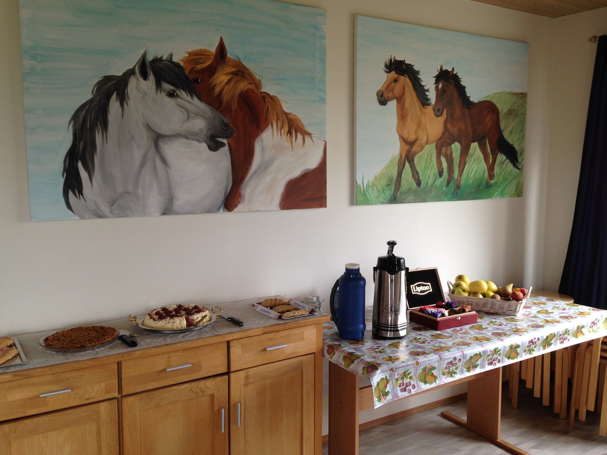 Immer dann, wenn Frühstück, Mittagessen, Nachmittagskaffee oder Abendessen aufgetischt wird, versammeln sich die Gäste von Grytubakki um die gemeinsamen Esstische.