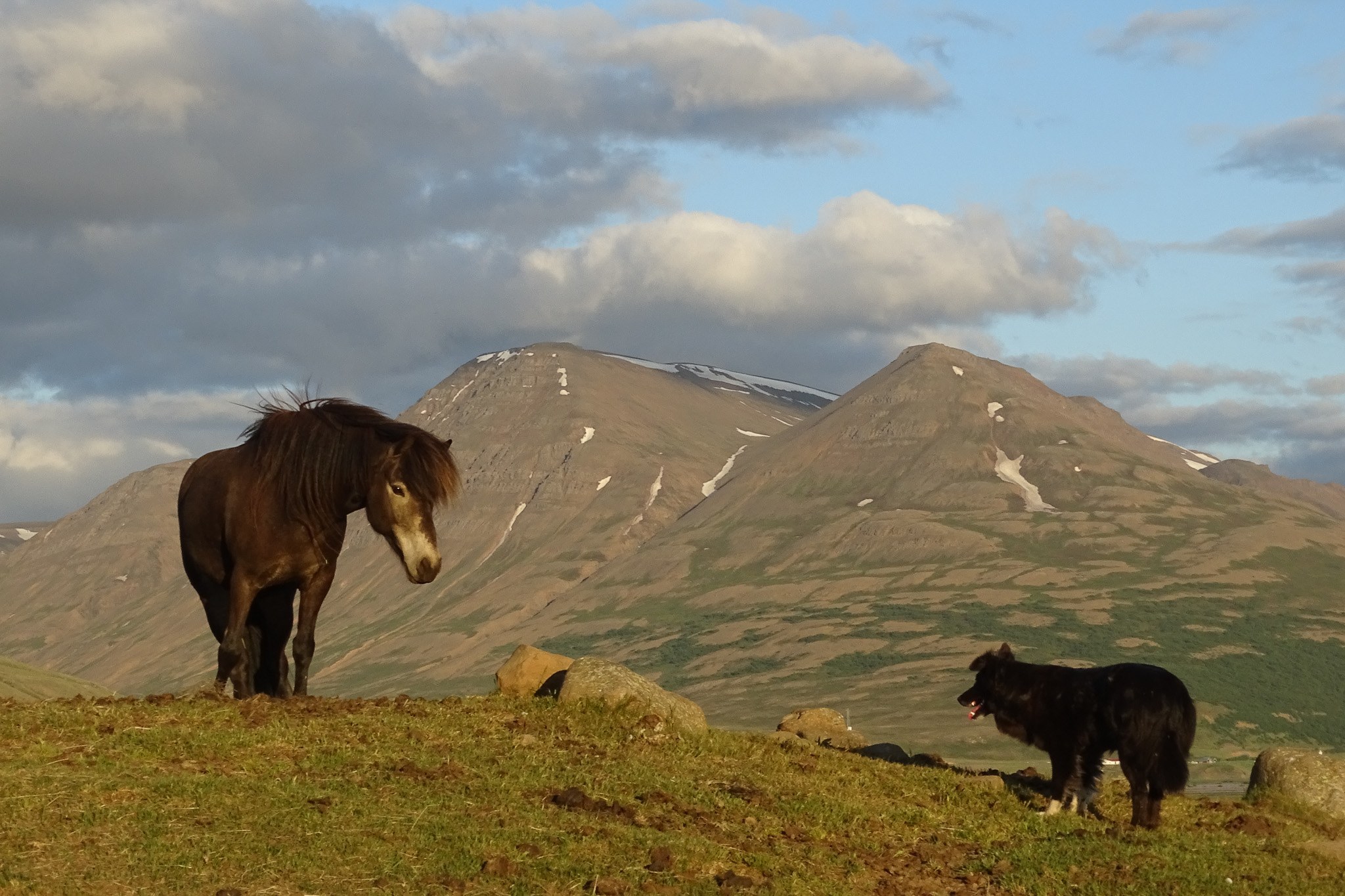 Wir fahren zurück zu unseren Pferden und satteln für den heutigen Ritt. Auf historischen Wegen reiten wir Richtung Südwesten, durch eine abwechslungsreiche Landschaft mit wunderschönen Ausblicken. Ziel der Etappe ist Stöng, wo wir die Pferde wieder auf einer Weide zurücklassen. Wir selbst werden mit dem Auto abgeholt und fahren nach Mývatn für eine Besichtigungstour. Abendessen und Übernachtung wieder in Vestmannsvatn.