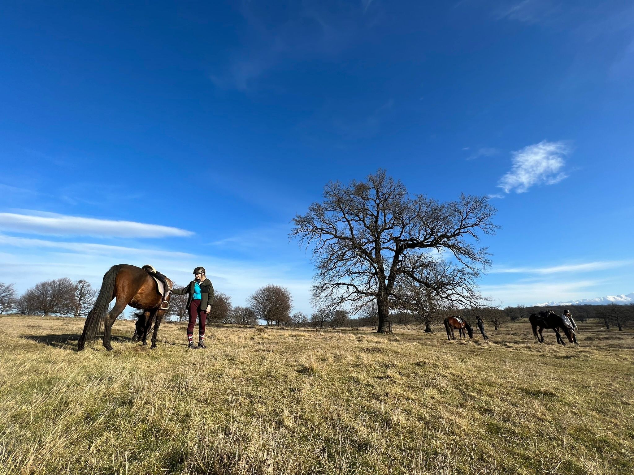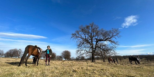 Teos Pferde leben die meiste Zeit des Jahres in der Herde. Sie sind gut ausgebildet und alle aufgrund Ihrer Freundlichkeit und positiven Eigenschaften ausgewählt. Teo hat eine Passion für die Zucht und zieht viele seiner Reitpferde selbst. Die Reitrouten können an die Bedürfnisse privater Gruppen (ab 4 Reitern) mit unterschiedlichen Niveaus angepasst werden, andernfalls werden Sie mit anderen Reitern für das Standardprogramm zusammengeführt. Die Reitroute ist je nach Jahreszeit flexibel – die Winter hier sind kalt und die Sommermonate können heiß werden! Das Reiten findet fast ausschließlich im Gelände statt und es gibt viele Möglichkeiten, unterwegs zu traben und zu galoppieren. Kurz & Knapp