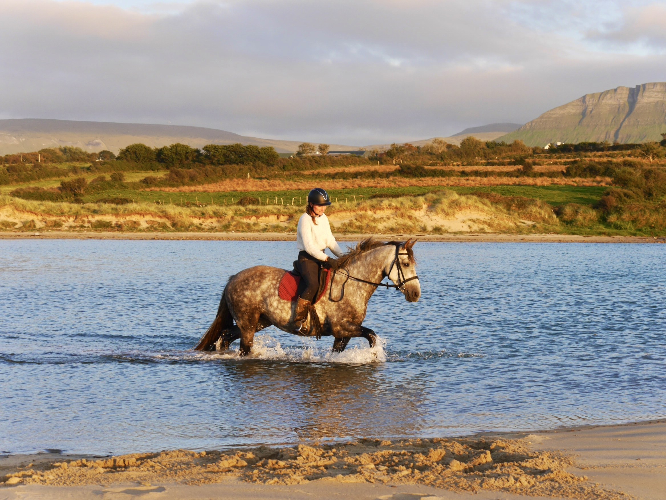 Wir entdecken traumhafte Sandstrände, eine Lagune mit Ebbe und Flut, die private Insel O´Connor Island und die felsige Küste von Mullaghmore Headland. Der Gleniff Hufeisen Ritt und die abgelegenen Wege am Fuße des Benbulben Berges laden zu schönen Ritten in der typischen Landschaft von Westirland ein.