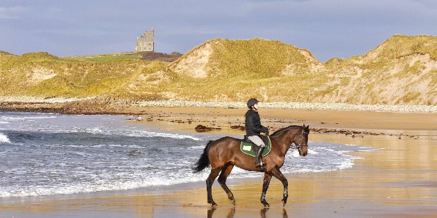 Nach einem ersten aufregenden Ritt entlang des Strandes von Trawalua geht es weiter, entlang der Grenze des Classiebawn Estate nach Mullaghmore.