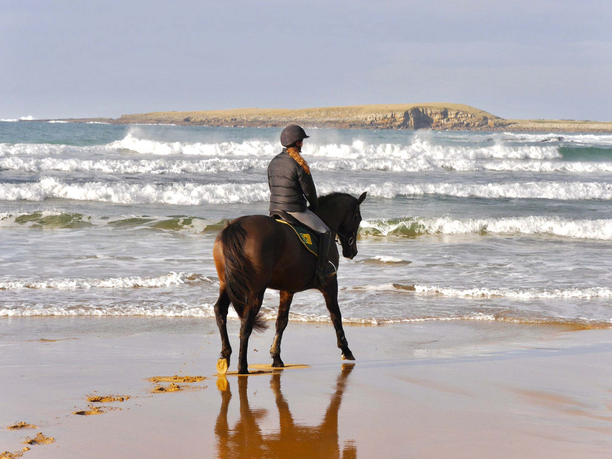 Dieser Ritt lässt Reiterträume wahr werden: schnelle Galoppaden an menschenleeren Sandstränden, grüne Weiden soweit das Auge reicht und der tosende Atlantik nie weit entfernt. Ein schneller Ritt für erfahrene Reiter.