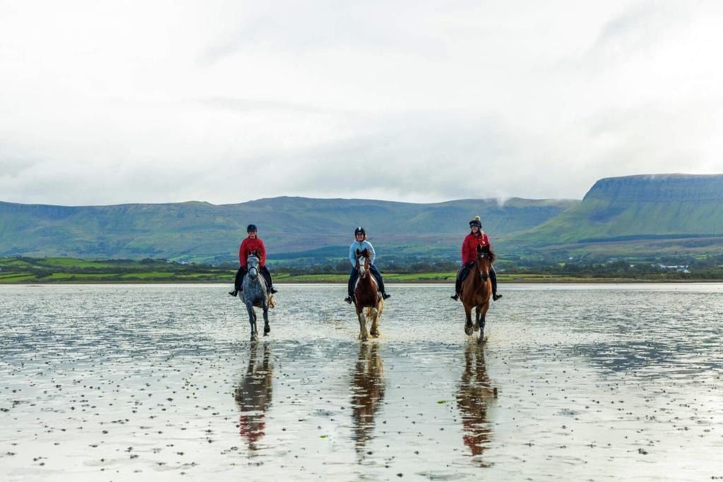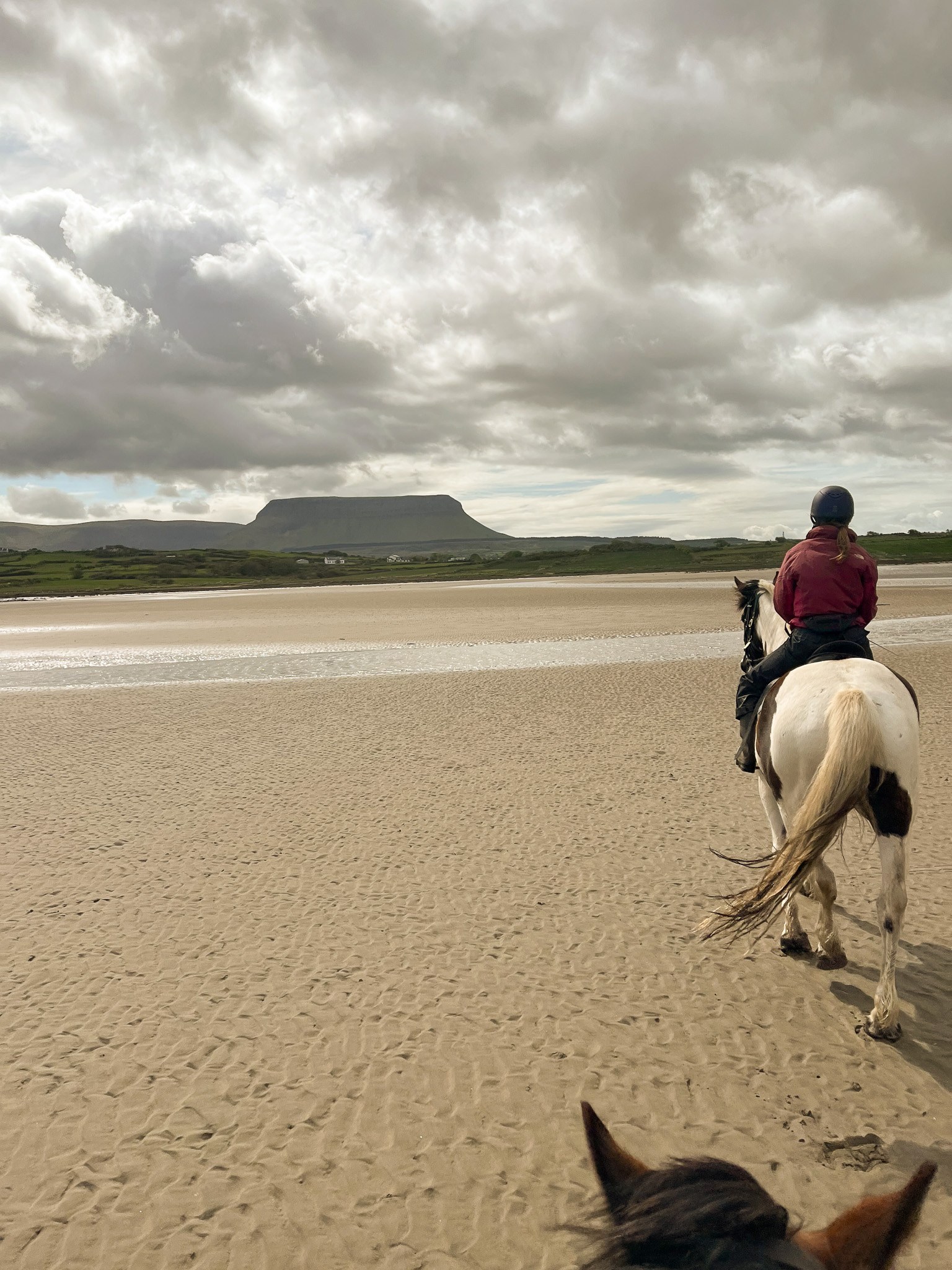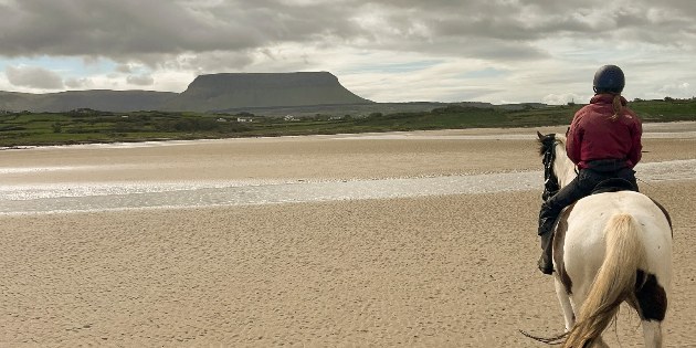 Dieser Ausritt kombiniert ein Küsten- und Landschaftserlebnis. So wird der erste Erster Teil des Ausritts entlang des wunderschönen Trawalua Sandstrands sein und anschließend geht es weiter über Stille Feldwege und Jahrhundert alte Moor Wege inklusive schöner Galoppstrecken, am Fuße des Benbulbin Mountain.