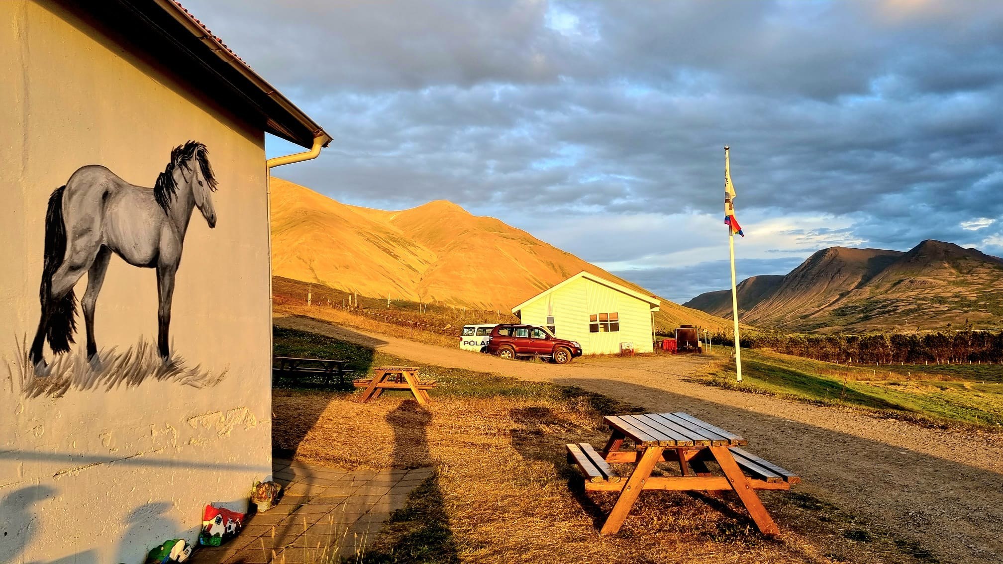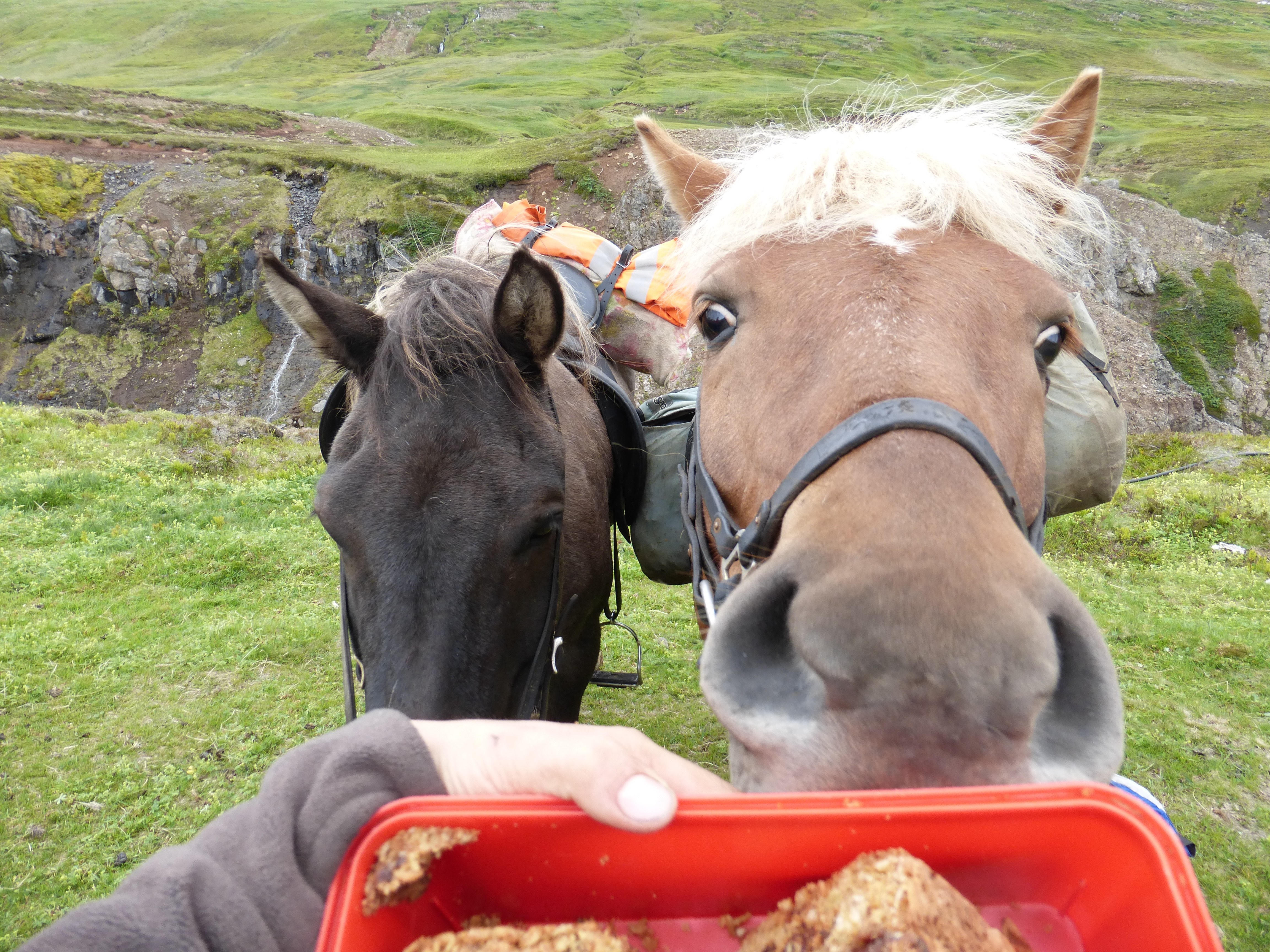 In Grytubakki stehen 2- bis 4-Bett-Zimmer mit Etagenbad in ausreichender Zahl zur Verfügung. Während der Ritte übernachten Sie in Farmen und Hochlandhütten. Letztere liegen dagegen oftmals an wunderbar einsamen Orten, an Fjordufern oder in weiten Tälern, wo man Island am intensivsten erleben kann. Bitte bringen Sie Handtücher und einen Schlafsack mit! Verpflegung Immer dann, wenn Frühstück, Mittagessen, Nachmittagskaffe oder Abendessen aufgetischt wird, versammeln sich die Gäste von Grytubakki um die gemeinsamen Esstische. Hier gibt es selbstverständlich isländische Spezialitäten, doch wird darauf geachtet, dass keine (für mitteleuropäische Geschmäcker) zu exotischen Dinge auf den Tisch kommen. Während der Reittouren ist für reichlich Verpflegung gesorgt, denn wir nehmen für die Mittagspausen Sandwiches und Getränke mit.