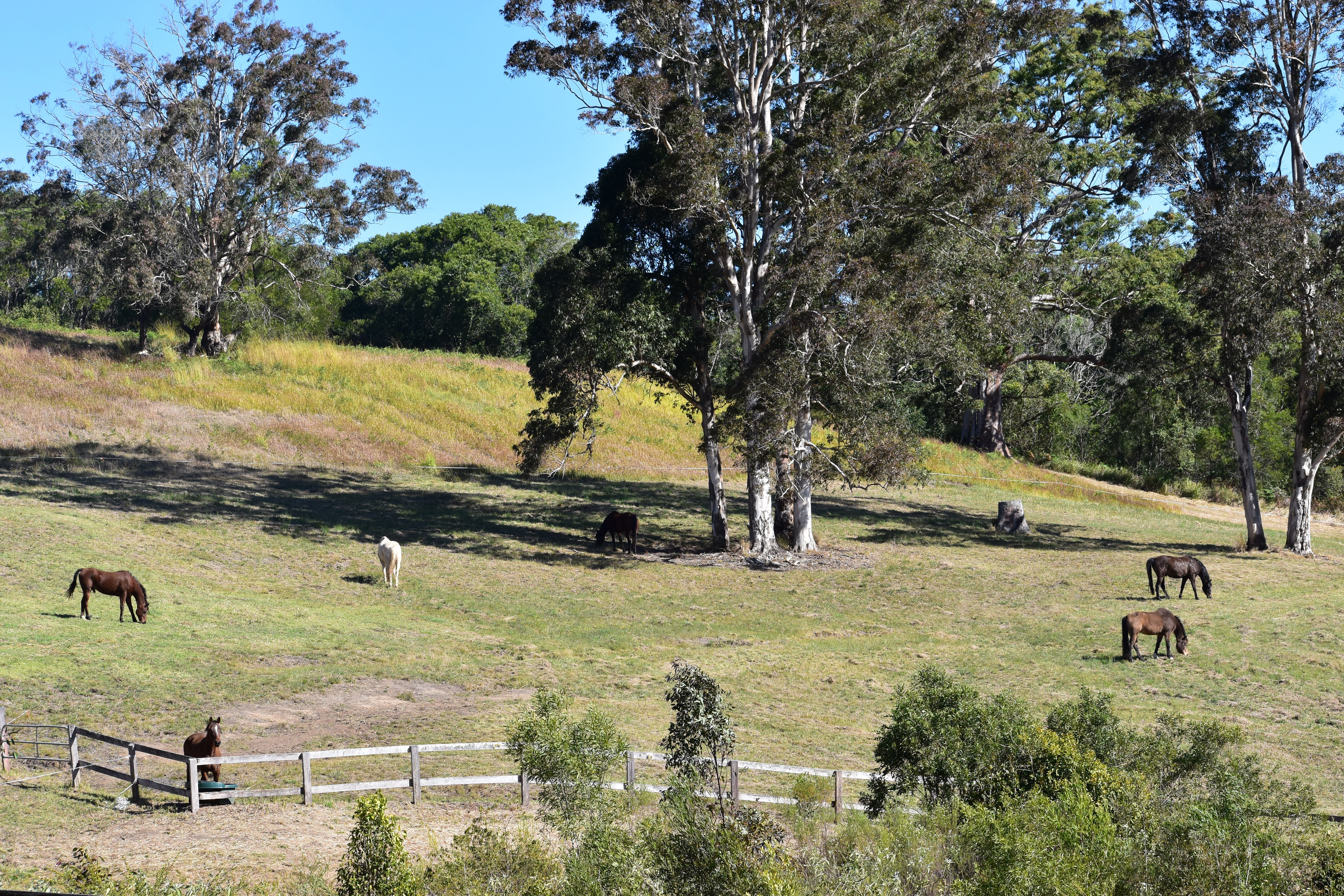 Auf der Farm leben 6 Trailpferde, 9 Rentnerpferde und 1 gerettetes Brumby Pferd.