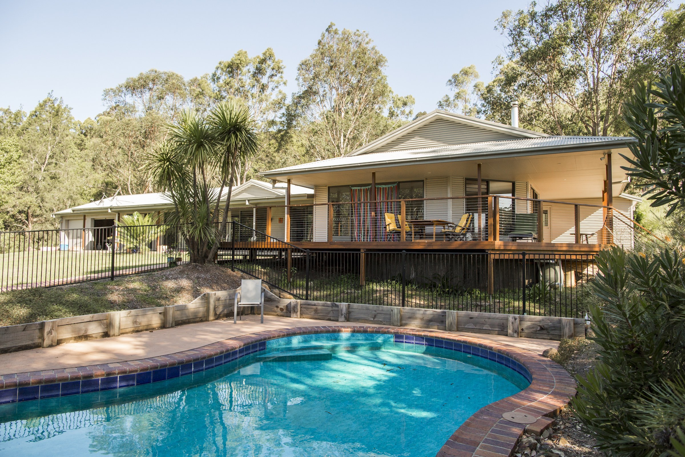Es gibt 2 Schlafzimmer in der Hauptlodge (1 Doppelzimmer, 1 Einzelzimmer) und 1 separate Hütte für 2 Personen (Queensize- und Einzelbett). Alle Zimmer verfügen über ein eigenes Bad. Außerdem gibt es einen Außenpool, eine große Außenterrasse, ein gemeinsames Wohnzimmer und Esszimmer und die Pferdeweiden direkt am Haus. Die Verpflegung ist Landestypisch und selbst gekocht. Wenn Sie eine spezielle Diät oder bestimmte Unverträglichkeiten haben, sagen Sie uns bitte bei Buchung bescheid.