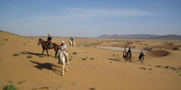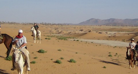 Marokko ist mit seinen unendlichen weiten Ebenen ein hervorragendes Land für endlose Galoppaden - doch Marokko ist mehr als nur sandige Wüstenlandschaft! Wir reiten über kleine, steinige Pfade die besonders geformten Berge hinauf und machen Rast an einigen Salzseen. Zudem reiten wir durch grüne Palmenhaine und besichtigen einige alte Städte mitten im Nirgendwo. Auf unserem Weg reiten wir sogar durch die Grenzregion zu Algerien und können von den Bergen aus in das Nachbarland hineinblicken. Am Ende unserer Reise erreichen wir dann endlich den tiefblauen Atlantik und veranstalten ein Wettrennen am Strand mit den vielen bunten Vogelschwärmen.