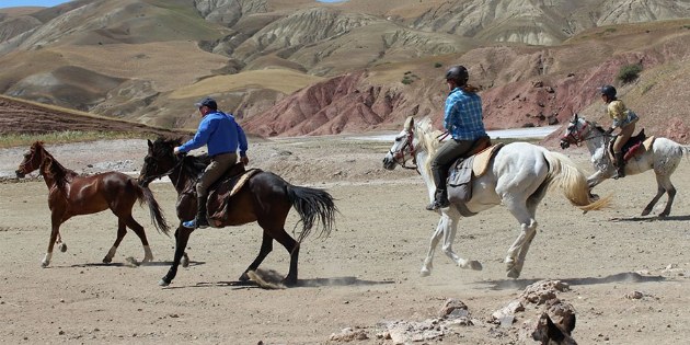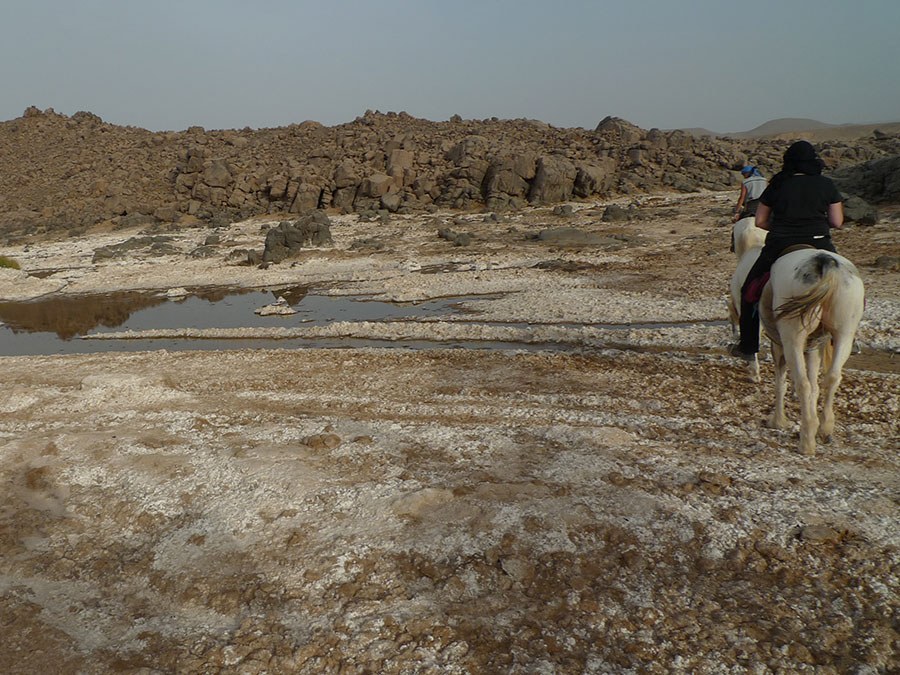 Sie reiten mit einem Araber-Berberpferd durch die wilde Landschaft des Mittleren Atlas: Zedernwälder, Land der Berberaffen, weite Prärien, die zum Galoppieren einladen, schwarze Nomadenzelte, karge Vulkanlandschaft. Abends können Sie sich in den Bergseen oder Flüssen erfrischen, die 40 Quellen des Oum Erbia.