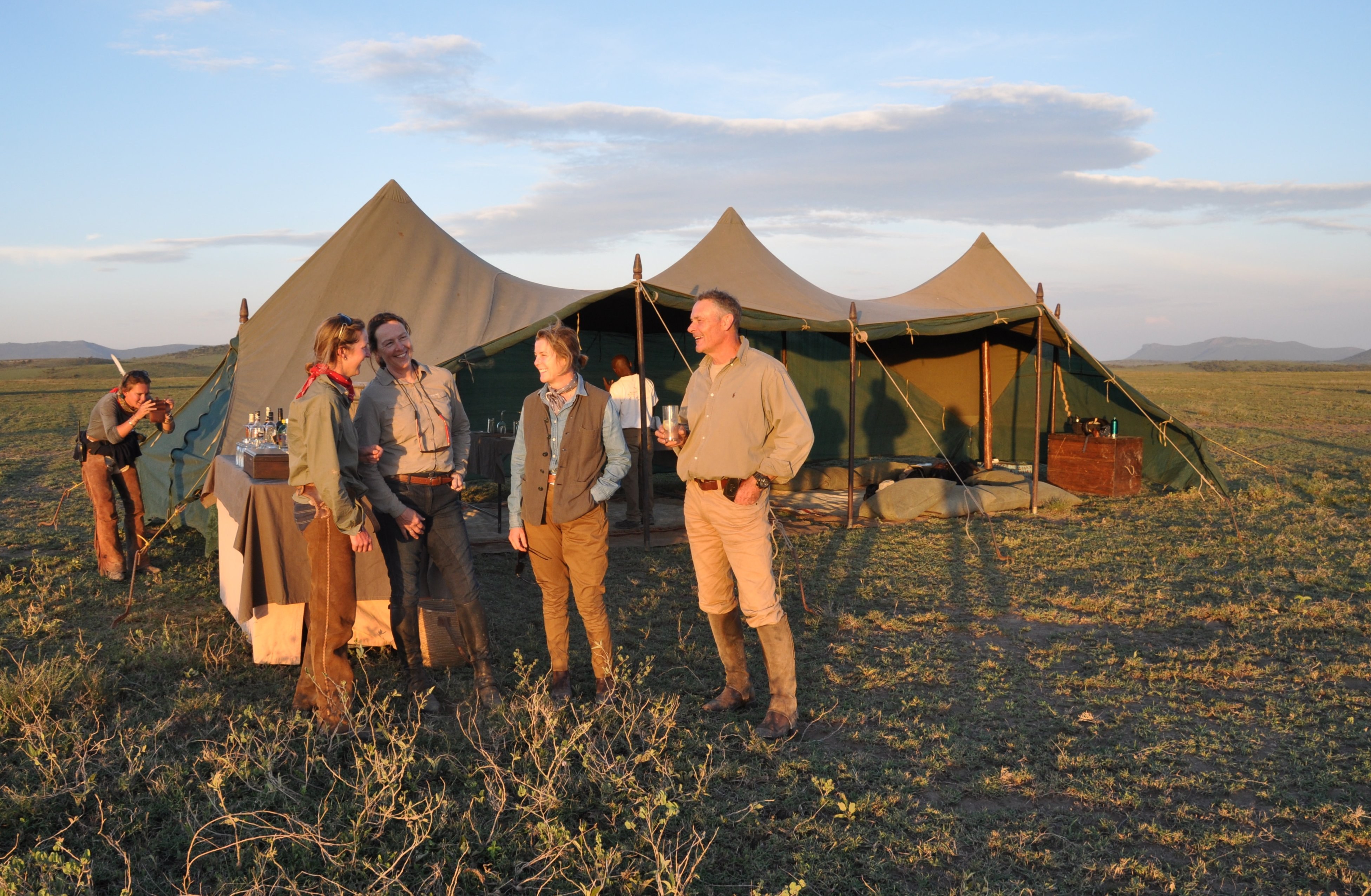 In der ersten Nacht werden Sie in einem Boutique Hotel auf dem Gelände des Polo Clubs übernachten, von wo aus Sie eine tolle Aussicht auf den Berg Meru und bei guter Sicht sogar auf den Kilimanjaro haben. Das "Golf Safari House" verfügt über 10 Zimmer und liegt eine kurze Fahrt mit dem Buggy vom angesehenen Kilimanjaro Golf Club entfernt. Die Zimmer sind stilvoll und komfortabel eingerichtet und verfügen über ein eigenes Bad, einen Standventilator, einen Safe und eine Kaffee-/Tee-Zubereitungsmöglichkeit. Moderne helle Farben und Möbel werden mit traditionellen Dhow-Holz von der afrikanischen Küste kombiniert. Sie haben Zugang zum WIFI im Clubhaus und können den Swimming Pool benutzen. SPA Behandlungen können auf Anfrage organisiert werden. Alle Getränke und das köstliche hausgemachte Essen werden Ihnen im Clubhaus serviert. Getränke sind auf der Lodge nicht im Preis enthalten. Mobile Camps Das „mobile Camp“ sind Zelte, die extra für solche Zwecke von uns konstruiert wurden. Sie sind sehr komfortabel und mit 3 mal 3 Metern auch geräumig. Moskitonetze befinden sich an der Tür und an den Fenstern, um eine gute Luftzirkulation zu erreichen und gleichzeitig einen Insektenschutz zu haben. Jedes Zelt ist mit einem Teppich, Handtuchhalter, Nachttischchen, Wasserflasche, Bett mit Baumwollbettwäsche und einem Solarlicht ausgestattet. Vor jedem Zelt ist eine Veranda mit Stühlen und einem Waschtisch, welchen Sie mit Ihrem Zeltpartner teilen. Jedes Zelt hat seine eigene Buschtoilette und seine Eimer-Dusche. Die Mahlzeiten werden von einem professionell geschulten Busch-Koch zubereitet. Mark English ist ein Gourmetkoch aus Südafrika und kreiert immer wieder einmal leckere und kunstvolle Gerichte auf einer unserer Safaris. Das Frühstück ist im traditionellen Cowboy-Style, es werden frisch gepresste Säfte und exotische afrikanische Früchte serviert. Das Mittagessen findet im Freien unter einem schattigen Baum statt. Entweder wird es uns von den Begleit-Fahrzeugen gebracht oder wir transportieren es in unseren Satteltaschen. Das Abendessen ist ein 3-Gänge Menü mit einer Mischung aus regionaler und internationaler Küche. Es wird immer zusammen mit frisch gebackenem Brot, frischen Salaten und Kräutern serviert. Die Getränke kommen ebenfalls aus der Region. Fly Camp Unsere Zelte des Fly Camps bestehen aus festen Moskitonetzen und haben zusätzlich einen Regenschutz. Mit Ausnahme von ängstlichen Menschen ist es für alle ein einzigartiges Erlebnis, so in der freien Natur zu übernachten, bei einer klaren Nacht mit einem unvergleichlichen Sternenhimmel als Himmelszelt.