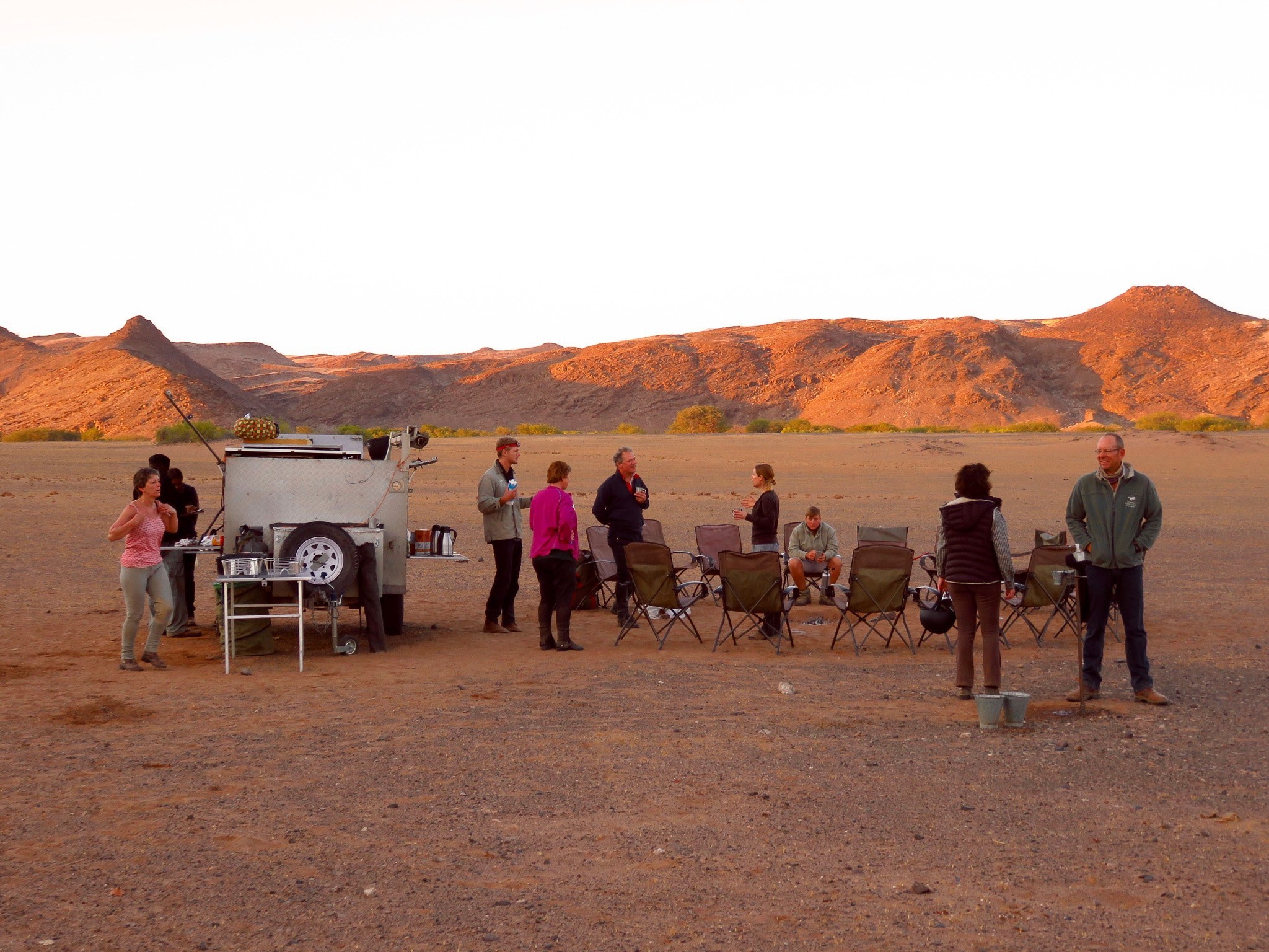 Camps Unterkunft in geräumigen Zelten (zu zweit) - in der Regel wird unter freiem Himmel geschlafen - Feldbetten, Segeltuchsäcke mit Daunen- oder Steppdecken, Kopfkissen, Klappstühle, heiße Eimer-Dusche am Abend, chemische Toilette. Gepäck wird per Lastwagen auf Schotterstraßen transportiert; wir reiten querfeldein und treffen die Fahrzeuge am Lagerplatz. Mahlzeiten Alle Mahlzeiten werden für Sie am offenen Feuer zubereitet und sind ebenfalls ein Erlebnis. “Man stelle sich vor: 1 Tonne Pferdefutter, 1 Tonne Feuerholz, 100 Ballen Heu und Luzerne, 7.000 L bis 10000 L Wasser (je nachdem, wie durstig die Pferde sind), 15 bis 20 Paletten Bier und andere Getränke (je nachdem, wie durstig die Reiter sind), nicht zu vergessen 50 kg Kartoffeln, 15 Brote, 12 Pakete Äpfel, ich weiß nicht wie viele Kilo Fleisch, Dutzende von Eiern und all das, was man eben so braucht, um bis zu 20 Pferde und rund 20 Personen mehr als 10 Tage lang durchzufüttern und zu erfreuen. Dazu kommt noch das Gepäck und die Ausrüstung: jeweils 15 bis 20 Deckenrollen, Feldbetten, Klappstühle und Zelte, 1 Kühl- und 2 Gefriertruhen, mehrere heiße Duschen… und nicht zuletzt das ‘Buschklo’. Als Begleitfahrzeuge nehmen wir einen 10-Tonner Mercedes-Lastwagen mit Anhänger und einen 4×4 Land Cruiser mit Küchenhänger mit… und ein Team, das den ganzen Krempel immer wieder auf- und ablädt. Wo wir unser Camp aufschlagen, gibt es meist vorher gar nichts; und wenn wir weiterziehen, hinterlassen wir nur unsere Hufspuren im Sand – denn wir reiten in unwegsamem Gelände. Und das unter teilweise unberechenbaren Wetterbedingungen.” Team von Namibia Horse Safari Wenn Sie eine bestimmte Diät benötigen, informieren Sie bitte das Team von pferdesafari vor Ihrer Buchung, um abzuklären, ob wir Ihre Anforderungen berücksichtigen können. WLAN Stellen Sie sich darauf ein, dass Sie während der Safari "unplugged" sind. Internet ist nur in größeren Städten verfügbar und das Mobilfunknetz bietet im besten Fall von unterwegs eine minimale Verbindung.