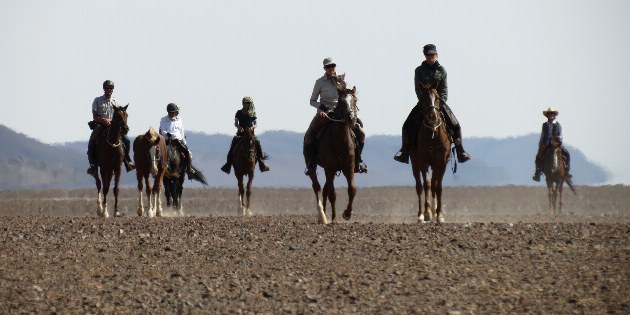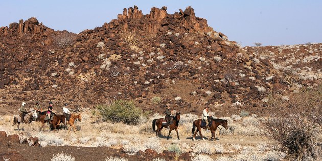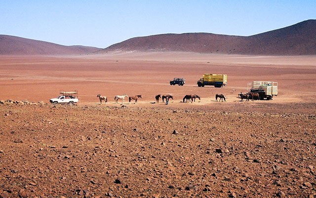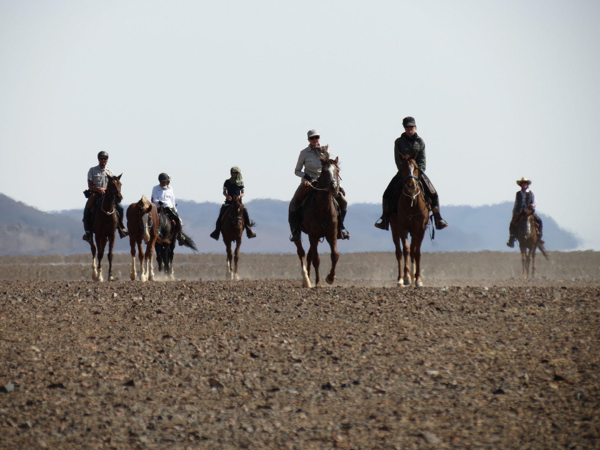 Eine ganze Sammlung lieber Pferde aller Rassen – Araber, Haflinger, Lipizzaner, Hannoveraner, Ranch Horses, Trakehner, Vollblüter, sogar Nachkommen der berühmten Wildpferde aus der Namibwüste. Kleine bis mittelgroße, rittige, trittsichere Pferde, die frei im Busch aufgewachsen sind, teilweise an Distanzrennen teilgenommen haben und Ihnen bei guter Behandlung ein zuverlässiger Kamerad sind. Vor 80 Jahren hinterließen die deutschen Schutztruppen eine Herde Pferde verschiedenster Rassen und Kaliber, die sich in der unwirtlichen Namibwüste unter extremsten Bedingungen entwickelten. Aufgrund der spärlichen Vegetation in der Wüste verbringen die einzigen Wildpferde Afrikas 90 % ihres Tagesablaufes mit der Nahrungs- und Wassersuche sowie dem erholsamen Schlaf. Auf einem Gebiet von 40.000 ha gibt es in der Namib nur eine einzige Wasserstelle. Die Pferde sind extremsten Temperaturschwankungen zwischen der glühenden Hitze des Tages und Temperaturen um den Gefrierpunkt in der Nacht ausgesetzt. Aufgrund der großen Trockenheit in den letzten Jahren waren die Garub-Wildpferde vom Aussterben bedroht. Um das Überleben der Rasse zu sichern, wurde ein Teil der Tiere in der größten Notzeit in der Nähe der Wasserstelle gefüttert, um ihnen den bis zu 30 km langen Weg zu den Weidegründen zu ersparen. Um den Bestand zu reduzieren, wurde ein anderer Teil eingefangen und an Farmer abgegeben, welche ihnen auf fruchtbarem Farmland ein neues Zuhause gaben. Auf Hilton der Desert Trail Farm gibt es mehrere dieser Garub-Wildpferde, die nach monatelanger Gewöhnung an den Menschen zuverlässige, ausdauernde und äußerst trittsichere Reitpferde geworden sind. Ein großes Problem stellte anfangs die Gesundheit der Tiere dar, waren sie in der unwirtlichen Wüste jahrzehntelang von Parasiten und Ungeziefer verschont geblieben. Sie mussten lernen, ihren Schweif zum Vertreiben von Fliegen zu nutzen, die in der Wüste so gut wie nie vorkommen. Sättel und Trensen “Wir benutzen leichte Westernsättel und eine eigens für unsere Bedürfnisse angefertigte ‘vaquero’-Mischung zwischen ‘stock saddle’ und ‘western’. Wir haben eine eigene kleine Sattlerei, machen fast alles selbst und achten dabei ganz besonders auf das Wohl der Pferde und die Bequemlichkeit für den Reiter. Nach guten 40.000 km im Sattel wissen wir ganz genau, worauf es ankommt! Gezäumt wird mit Wassertrensen oder gebisslos. Satteltaschen sind vorhanden” Team von Namibia Horse Safari