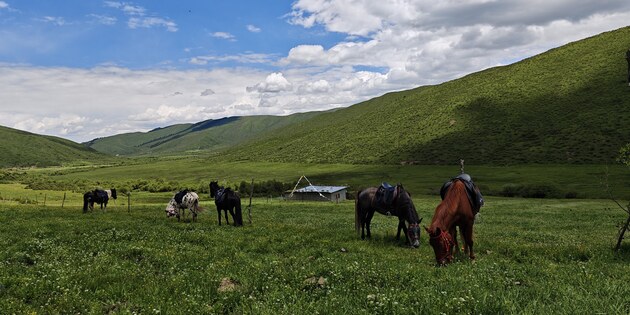 Sie lernen die Hequ-Pferde kennen, eine lokale Rasse, die typisch für die tibetischen Nomaden und Züchter Sichuans ist. Diese robusten und energiegeladenen Pferde sind perfekt an das abwechslungsreiche Terrain der Region angepasst. Sie verkörpern die Kraft und Wendigkeit, die für die Erkundung der Berge und weiten Steppen benötigt werden.