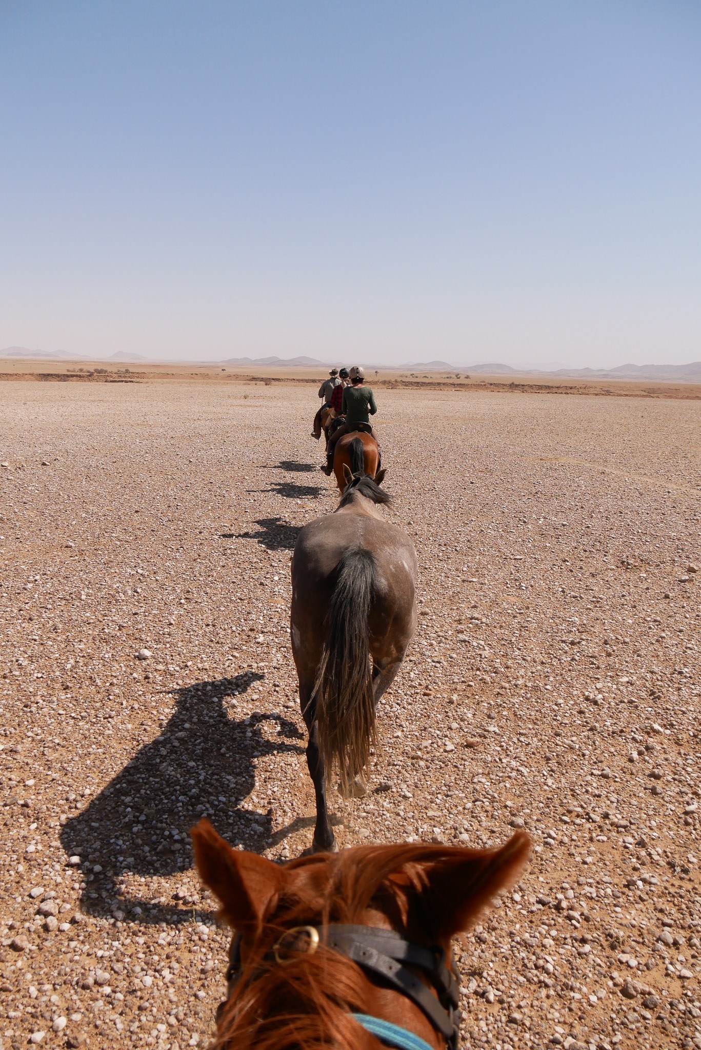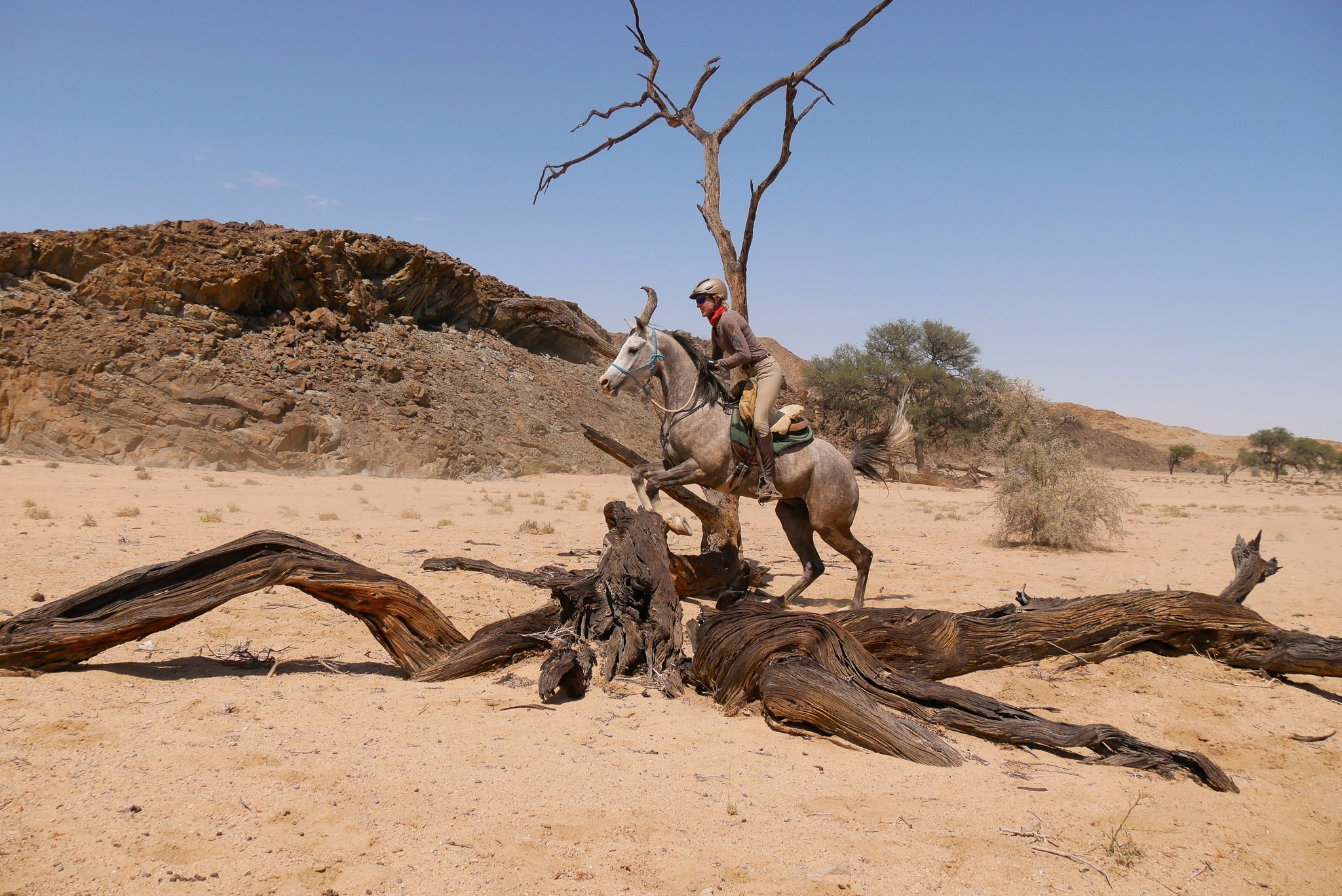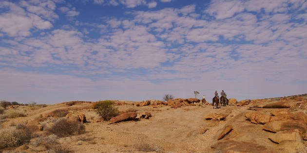 Die Reise startet und endet in Windhoek und führt in 7,5 Reittagen über fast 400 km von den Hochlagen in Zentralnamibia bis zum Atlantischen Ozean, d.h. 20 bis 60 km Reiten pro Tag. Alle Strecken führen über unebenes Terrain. Die Ritte starten nach dem Frühstück gegen 8 Uhr und dauern rund 4 bis 5 Stunden am Vormittag. Nach der Mittagspause (1 bis 2 Stunden) sitzen Sie am Nachmittag noch einmal rund 2 bis 3 Stunden im Sattel.