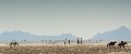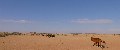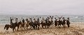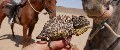 “Man stelle sich vor: 1 Tonne Pferdefutter, 1 Tonne Feuerholz, 100 Ballen Heu und Luzerne, 7.000 bis 10.000 Liter Wasser (je nachdem, wie durstig die Pferde sind), 15 bis 20 Paletten Bier und andere Getränke (je nachdem, wie durstig die Reiter sind), nicht zu vergessen 50 kg Kartoffeln, 15 Brote, 12 Pakete Äpfel, ich weiß nicht wie viele Kilo Fleisch, Dutzende von Eiern und all das, was man eben so braucht, um bis zu 20 Pferde und rund 20 Personen mehr als 10 Tage lang durchzufüttern und zu erfreuen. Dazu kommt noch das Gepäck und die Ausrüstung: jeweils 15 bis 20 Deckenrollen, Feldbetten, Klappstühle und Zelte, 1 Kühl- und 2 Gefriertruhen, mehrere heiße Duschen… und nicht zuletzt das ‘Buschklo’. Als Begleitfahrzeuge nehmen wir einen 10-Tonner Mercedes-Lastwagen mit Anhänger und einen 4×4 Land Cruiser mit Küchenhänger mit… und ein Team, das den ganzen Krempel immer wieder auf- und ablädt. Wo wir unser Camp aufschlagen, gibt es meist vorher gar nichts; und wenn wir weiterziehen, hinterlassen wir nur unsere Hufspuren im Sand – denn wir reiten in unwegsamem Gelände. Und das unter teilweise unberechenbaren Wetterbedingungen.” - Team vom Wüstenritt.