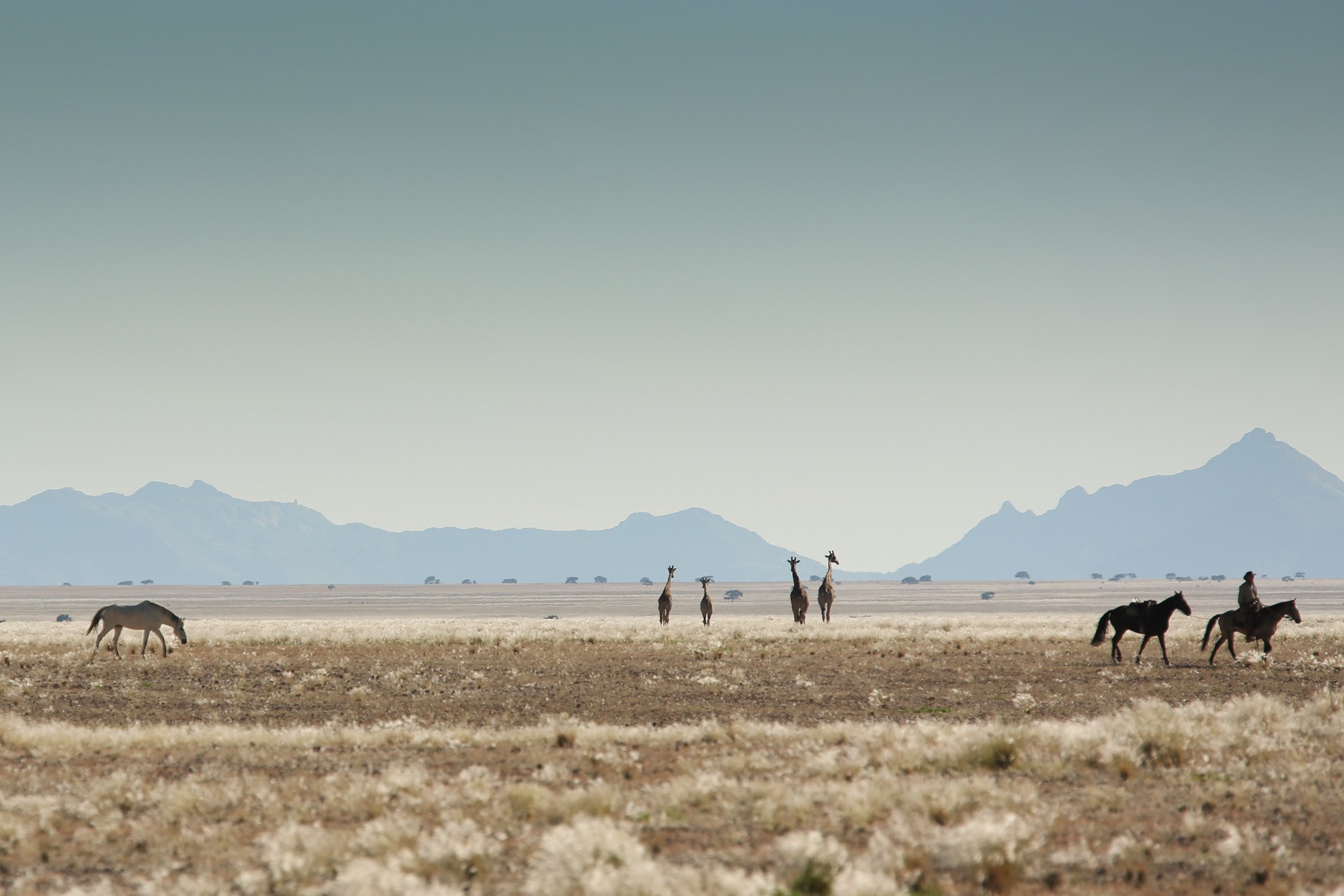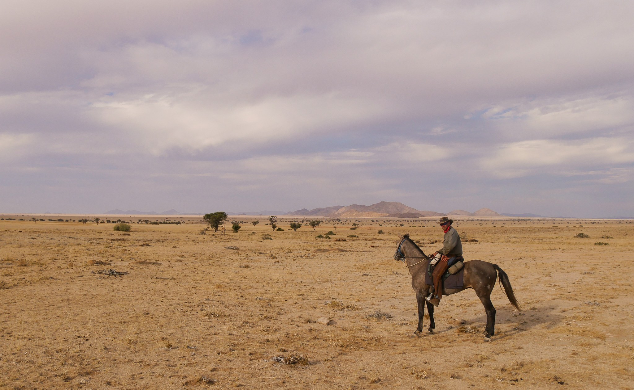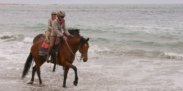 Auf der Strecke finden Sie Schotter und Geröll vor, teilweise schwieriges Gelände, später guter Sandboden (Trockenwüste), Strand und Sand am Atlantik. In den weiten, grasbewachsenen Ebenen der Namib leben Giraffen, Springböcke und Antilopen, in den Flussschluchten gibt es Bergzebras. Kinder und Nichtreiter