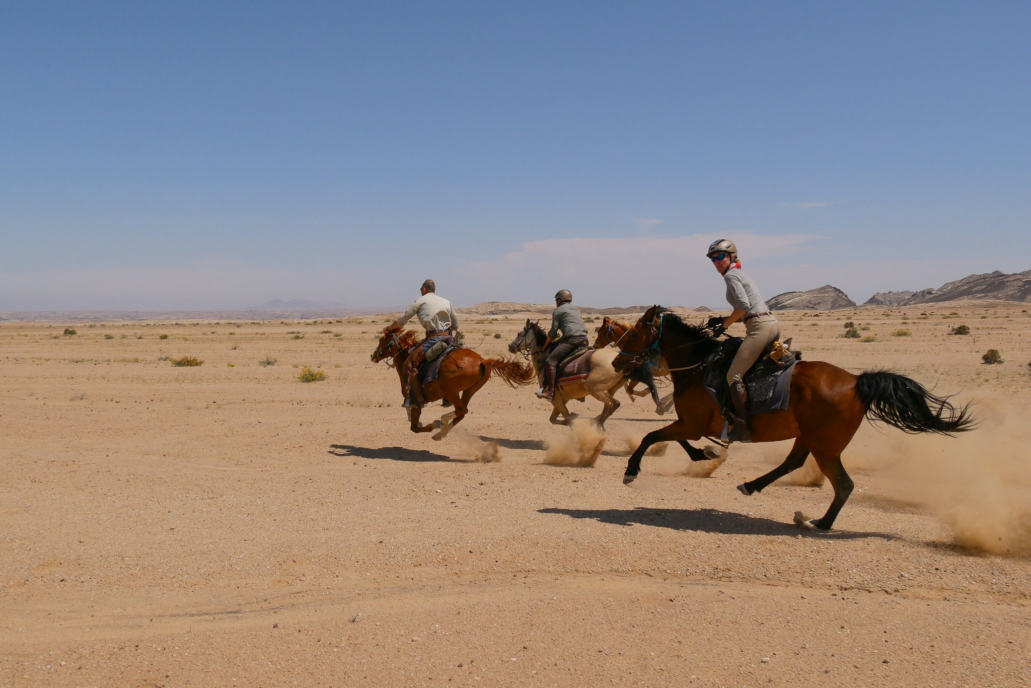 WüstenrittDieser Ritt durch die Namib Wüste ist auch führ erfahrene Reiter eine echte Challenge. Sie werden als Reiter herausgefordert und beidseitiger Respekt zwischen Ihnen und Ihrem Pferd wird aufgebaut.
